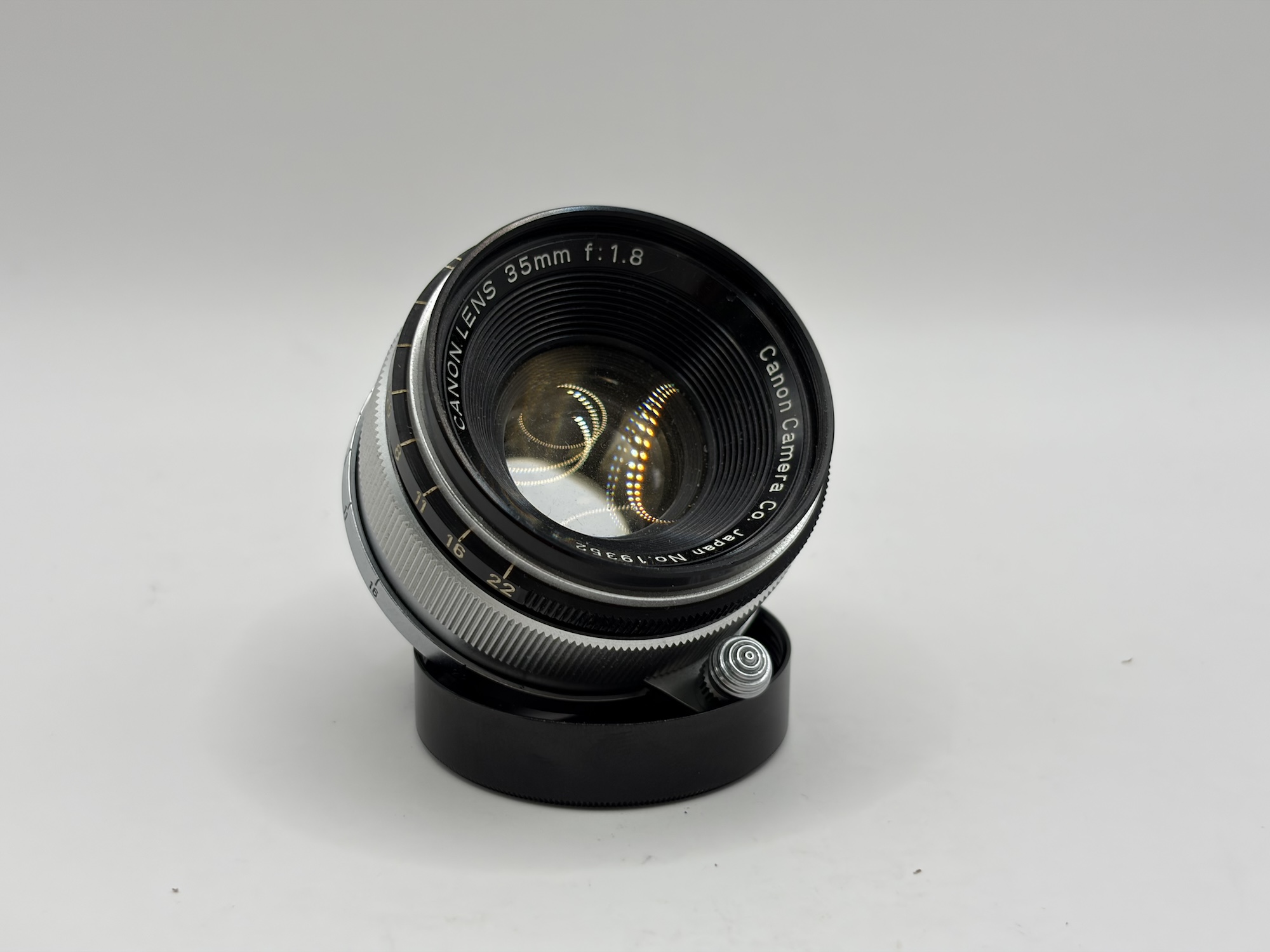 Canon 35mm f1.8 in LTM. The lens is in near mint condition. Beautiful barrel, no scratches, haze or fungus. Comes with a generic rear cap.