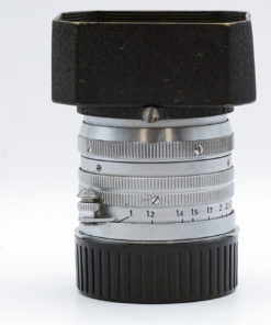 It comes with an original Leica LTM-M adapter, an original hood, and a generic rear M cap.